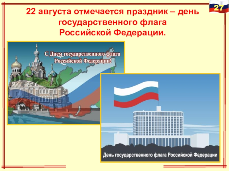 Слайд 2722 августа отмечается праздник – день государственного флага