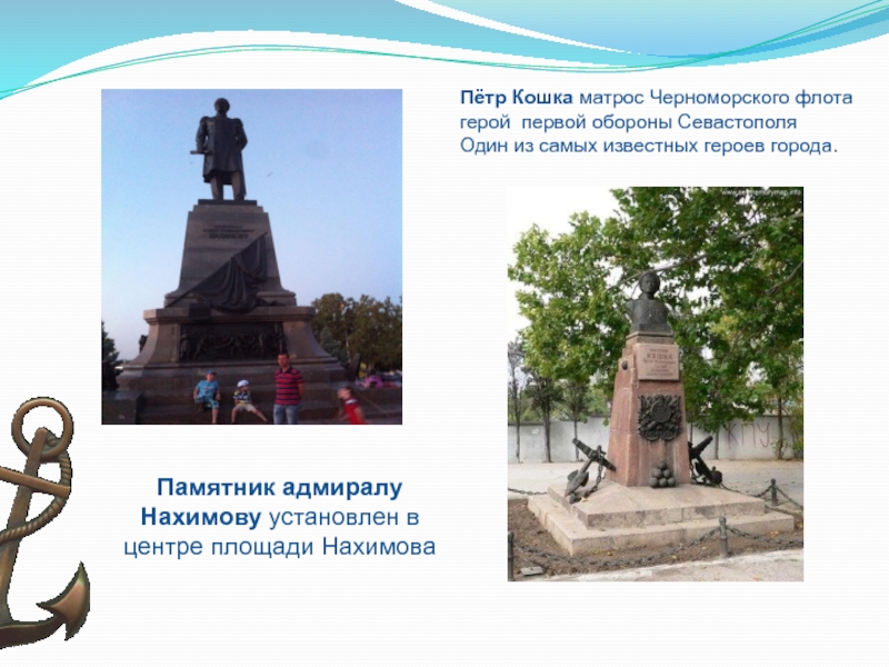 Памятник адмиралу Нахимову установлен в центре площади Нахимова