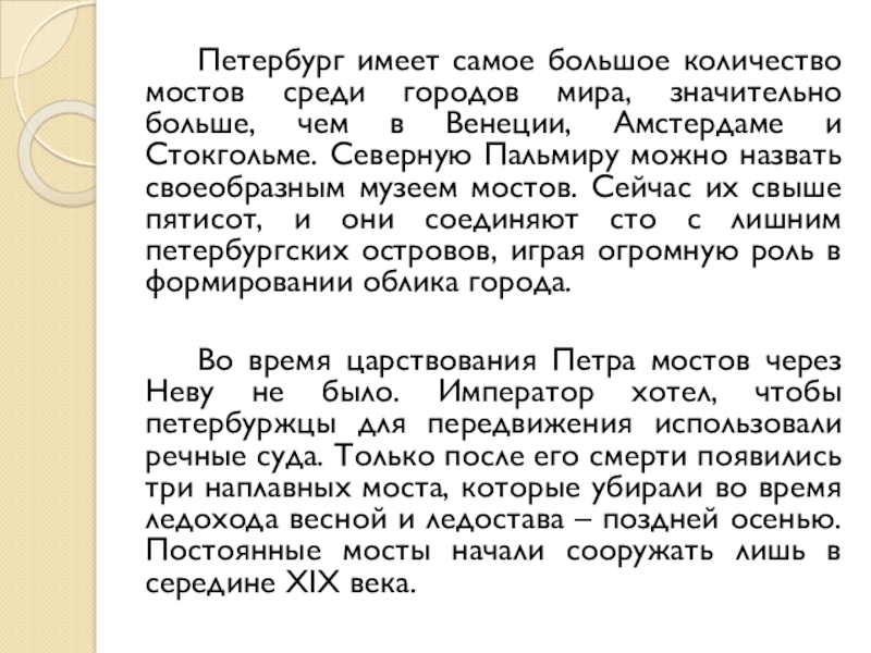 Слайд 22 Петербург имеет самое большое количество мостов среди городов мира, значительно больше,