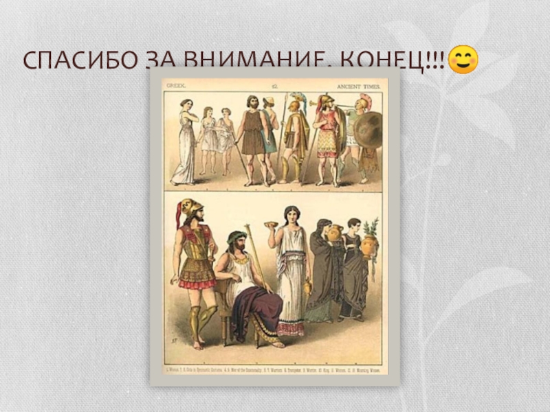 Костюмы ДРЕВНЕЙ ГРЕЦИИКостюм в Древней Греции складывался в тесной связи с условиями жизни греков и под влиянием