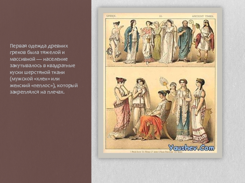 Слайд 7Первая одежда древних греков была тяжелой и массивной — население закутывалось