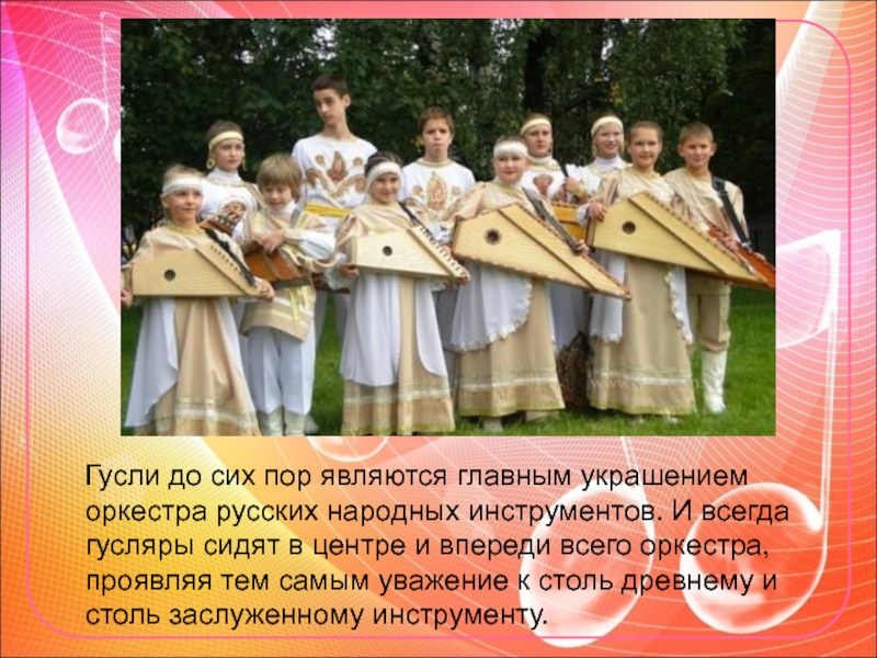 Слайд 8 Гусли до сих пор являются главным украшением оркестра русских