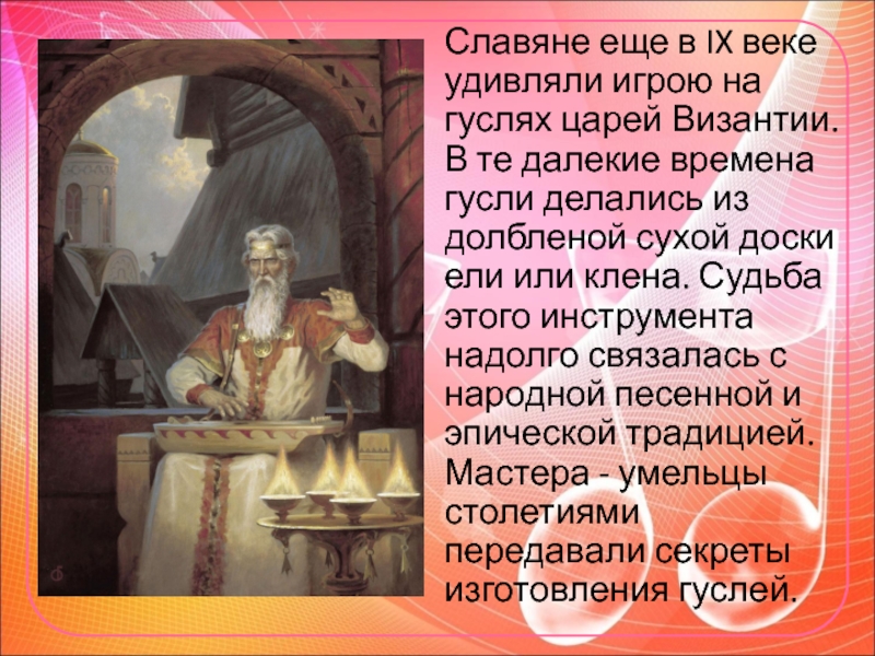 Слайд 4 Славяне еще в IX веке удивляли игрою на гуслях