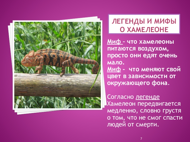Познакомиться с легендами и мифами о хамелеоне;