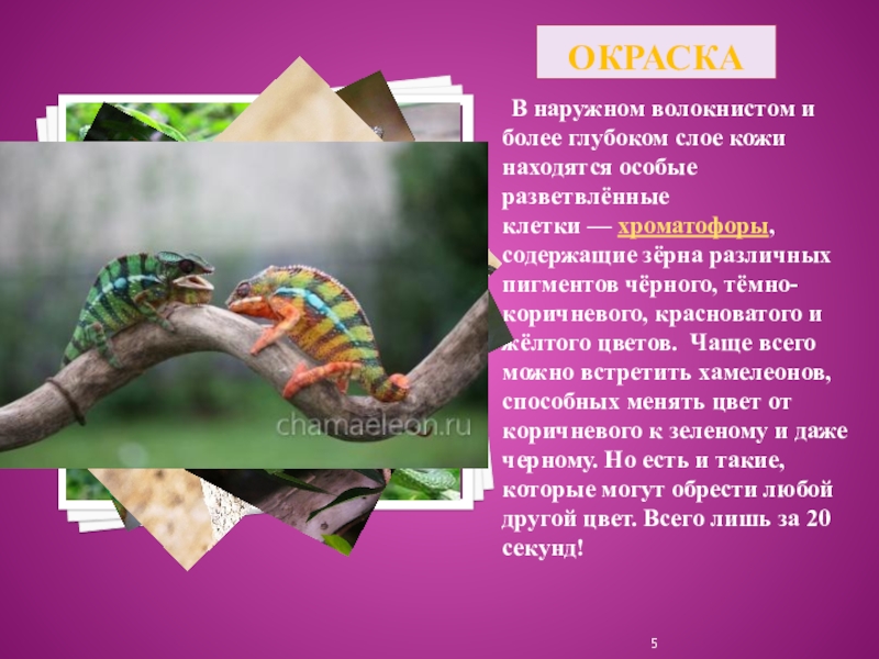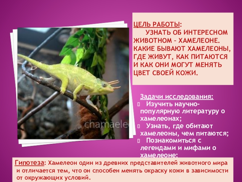Изучить научно-популярную литературу о хамелеонах;