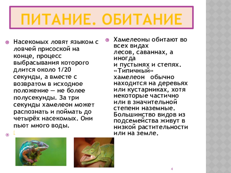 Узнать, где обитают хамелеоны, чем питаются;