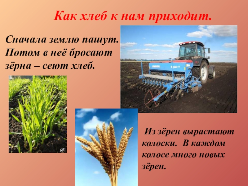 Из зёрен вырастают колоски. В каждом колосе много новых зёрен.