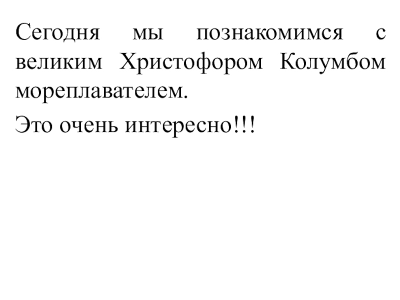 Слайд 2Сегодня мы познакомимся с великим Христофором Колумбом мореплавателем.