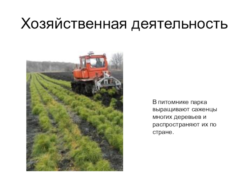 Хозяйственная деятельностьВ питомнике парка выращивают саженцы многих деревьев и распространяют их по стране.