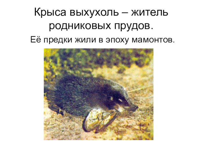 Слайд 24Крыса выхухоль – житель родниковых прудов. Её предки жили в эпоху