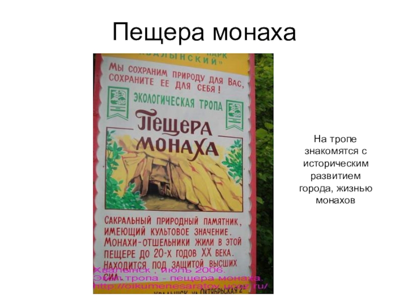 Пещера монахаНа тропе знакомятся с историческим развитием города, жизнью монахов