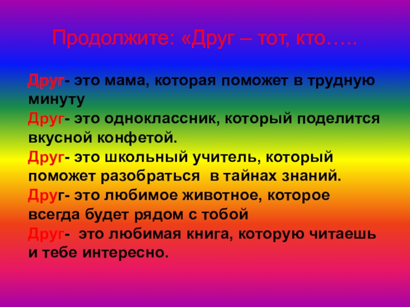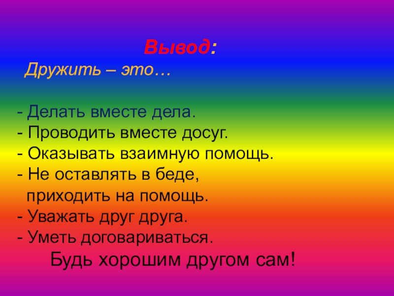 Дружба – близкие отношения, основанные на взаимном доверии, привязанности, общности интересов.
