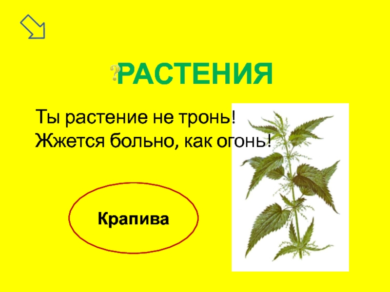 Ты растение не тронь! Жжется больно, как огонь!КрапиваРАСТЕНИЯ