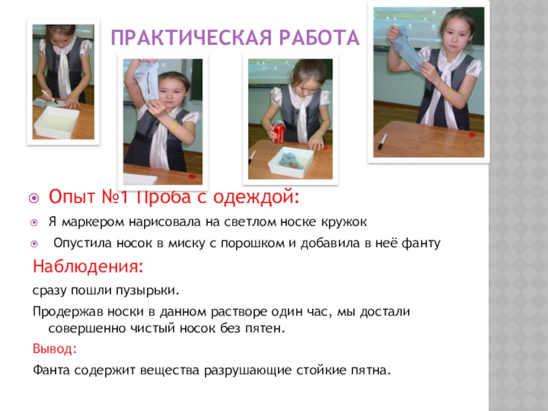 Продержав носки в данном растворе один час, мы достали совершенно чистый носок без пятен.