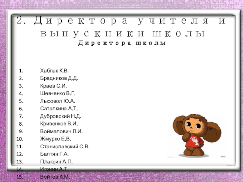 Это сайт презентаций, где можно хранить и обмениваться своими презентациями, докладами, проектами, шаблонами в формате PowerPoint с другими пользователями. Мы помогаем школьникам, студентам, учителям, преподавателям хранить и обмениваться учебными материалами.
