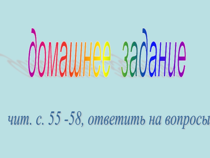 домашнее задание чит. с. 55 -58, ответить на вопросы