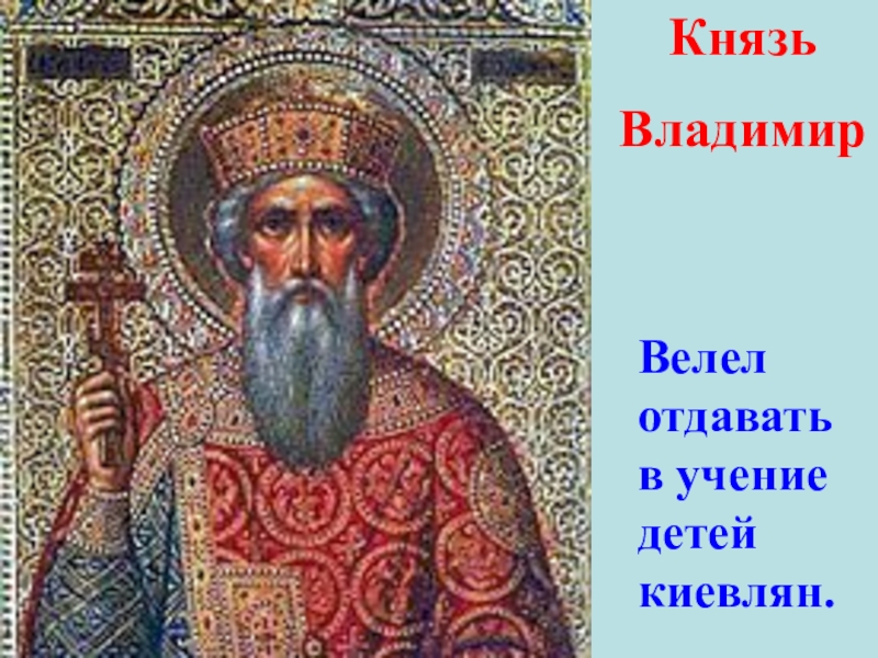 Князь ВладимирВелел отдавать в учение детей киевлян.