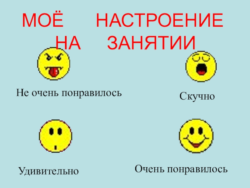 Не очень понравилось Очень понравилосьСкучноУдивительноМОЁ   НАСТРОЕНИЕ НА   ЗАНЯТИИ
