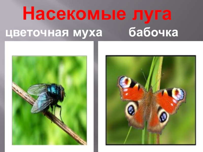 Слайд 28 Насекомые луга цветочная муха бабочка