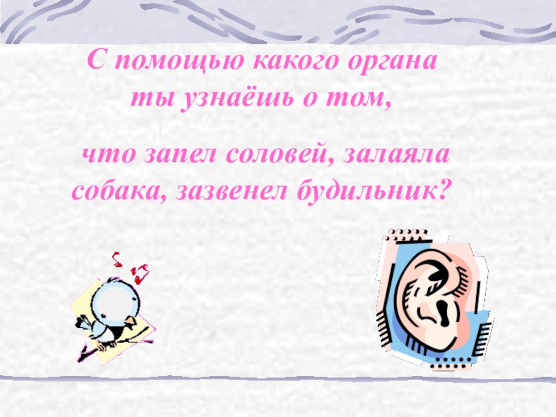 С помощью какого органа ты узнаёшь о том, что запел соловей, залаяла собака, зазвенел будильник?