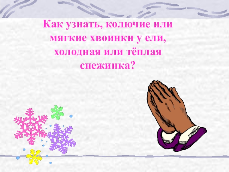 Слайд 6Как узнать, колючие или мягкие хвоинки у ели, холодная или тёплая