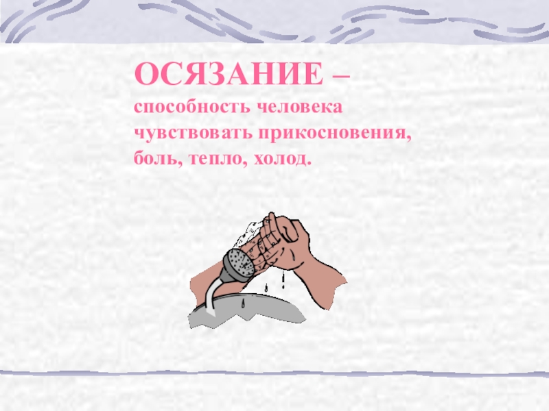 Слайд 17ОСЯЗАНИЕ – способность человека чувствовать прикосновения, боль, тепло, холод.
