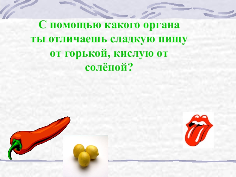 Слайд 5С помощью какого органа ты отличаешь сладкую пищу от горькой, кислую