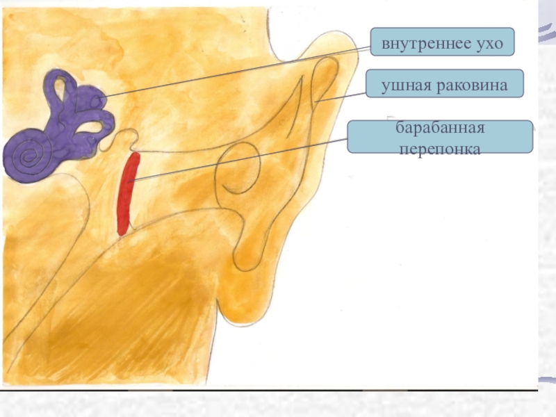 ушная раковинабарабанная перепонкавнутреннее ухо