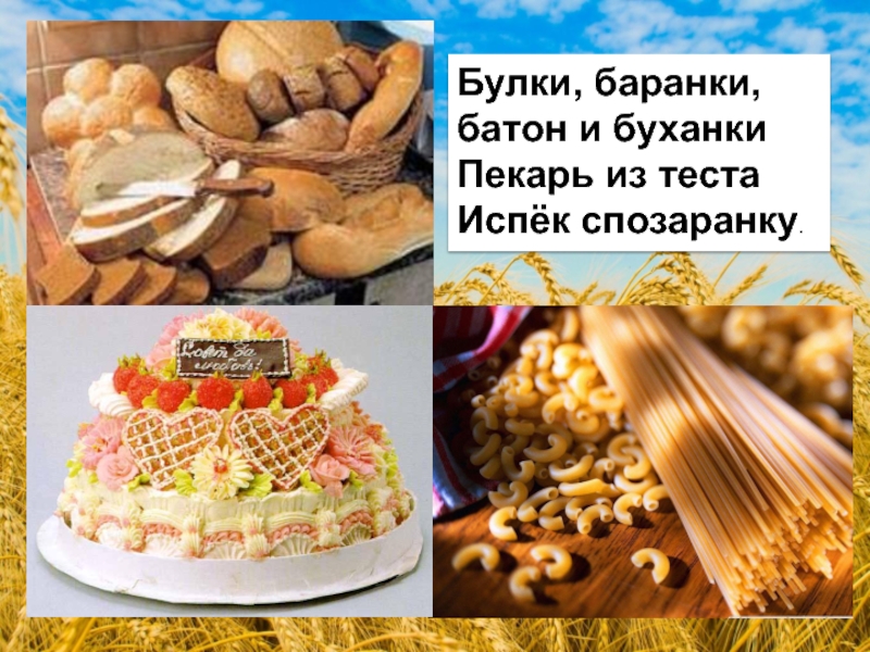 Булки, баранки, батон и буханкиПекарь из тестаИспёк спозаранку.