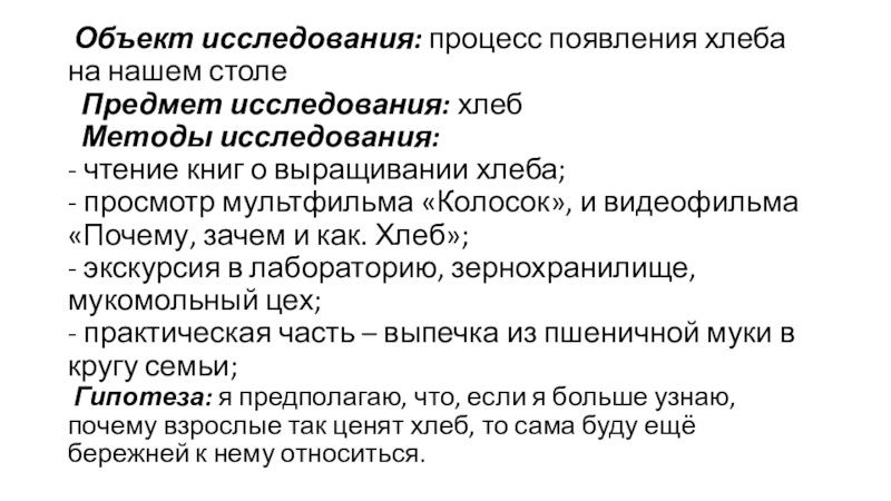 Гипотеза: я предполагаю, что, если я больше узнаю, почему взрослые так ценят хлеб, то сама буду ещё бережней к нему относиться.
