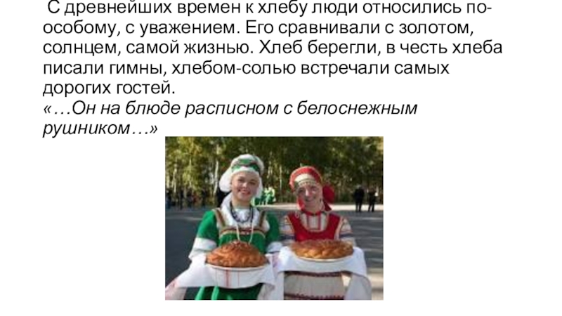 Слайд 8 С древнейших времен к хлебу люди относились по-особому, с уважением.