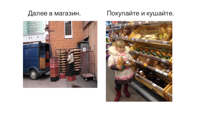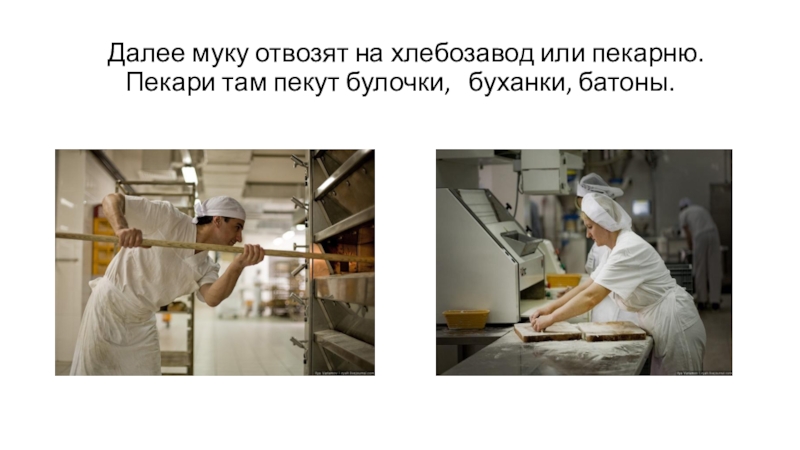 Слайд 21 Далее муку отвозят на хлебозавод или пекарню. Пекари там пекут
