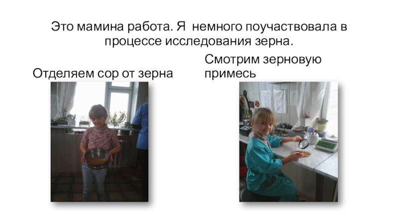 Слайд 16Это мамина работа. Я немного поучаствовала в процессе исследования зерна.