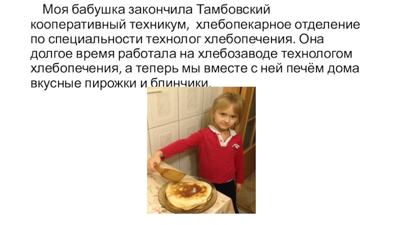 Слайд 24 Моя бабушка закончила Тамбовский кооперативный техникум, хлебопекарное отделение по