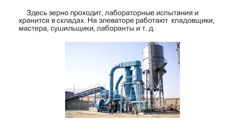 Слайд 14 Здесь зерно проходит, лабораторные испытания и хранится в