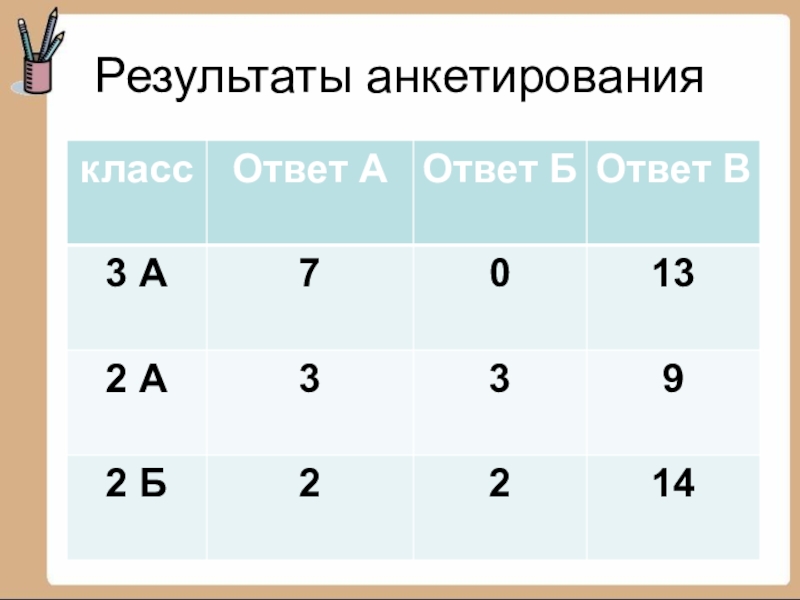 Слайд 15Результаты анкетирования