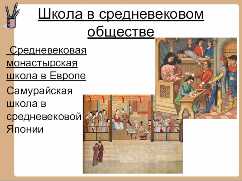 Школа в средневековом обществе Средневековая монастырская школа в ЕвропеСамурайская школа в средневековой Японии