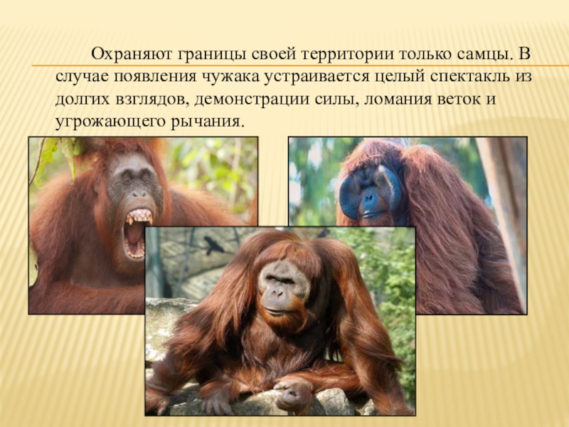 Слайд 5 Охраняют границы своей территории только самцы. В случае появления чужака устраивается