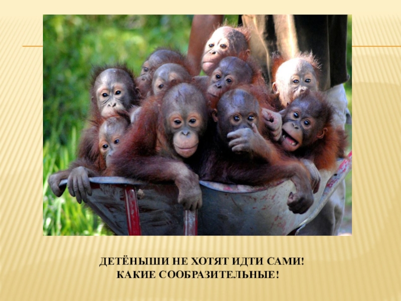 Слайд 7 Детёныши не хотят идти сами! Какие сообразительные!