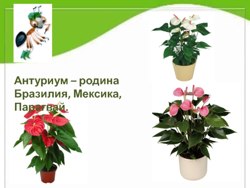Слайд 15Антуриум – родина Бразилия, Мексика, Парагвай.