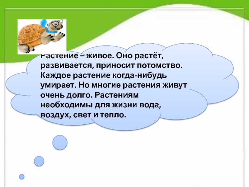 Слайд 20Растение – живое. Оно растёт, развивается, приносит потомство. Каждое растение когда-нибудь