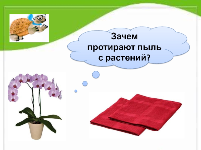 Слайд 18Зачем протирают пыль с растений?
