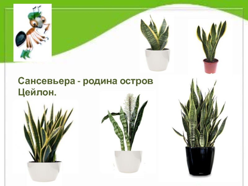 Слайд 13Сансевьера - родина остров Цейлон.