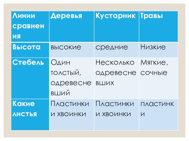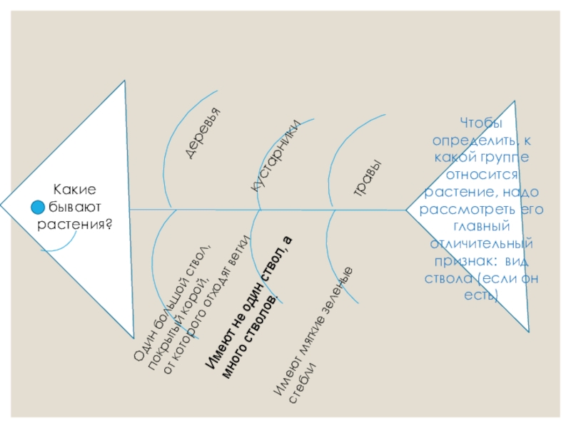 Чтобы определить, к какой группе относится растение, надо рассмотреть его главный отличительный признак: вид ствола (если он есть)