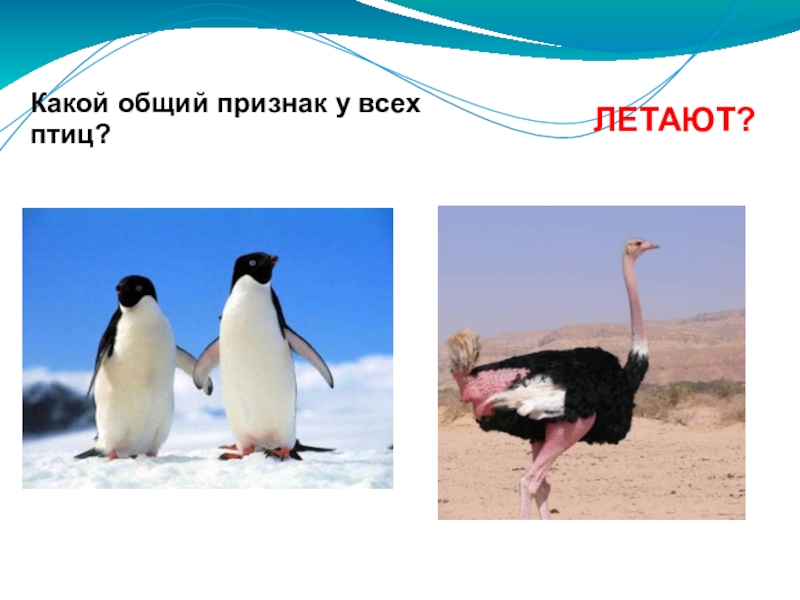 Какой общий признак у всех птиц? ЛЕТАЮТ?