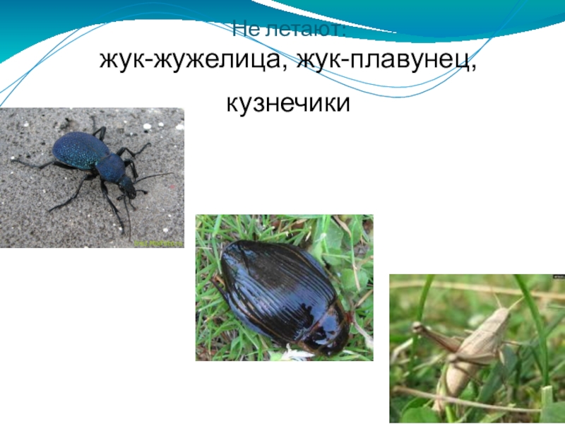 Слайд 9Не летают: жук-жужелица, жук-плавунец, кузнечики