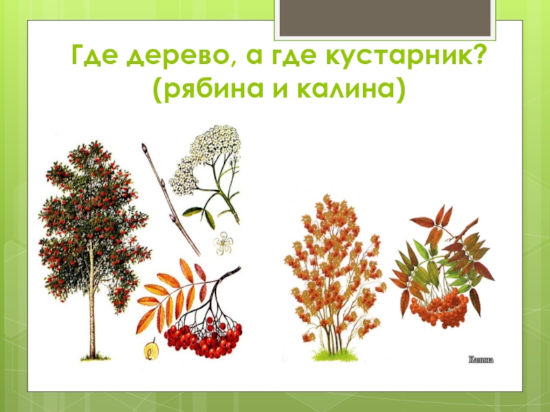 Слайд 8Где дерево, а где кустарник? (рябина и калина)