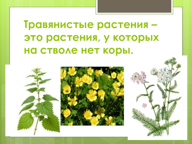 Слайд 7Травянистые растения – это растения, у которых на стволе нет коры.