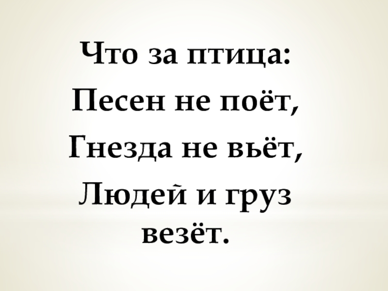 Что за птица: Песен не поёт,Гнезда не вьёт, Людей и груз везёт.