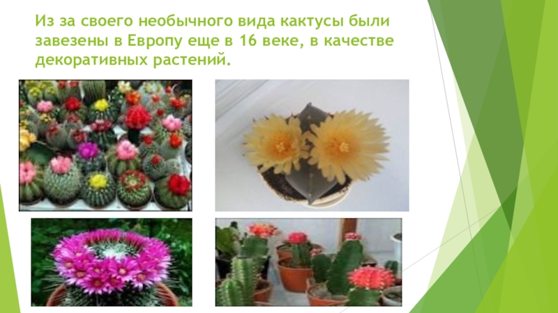 Слайд 6Из за своего необычного вида кактусы были завезены в Европу еще